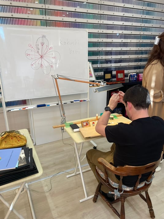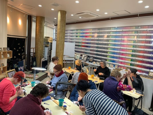 This time, they not only joined the workshop but also toured the studio, which may have helped them gain a deeper understanding of what Kaga embroidery is all about.