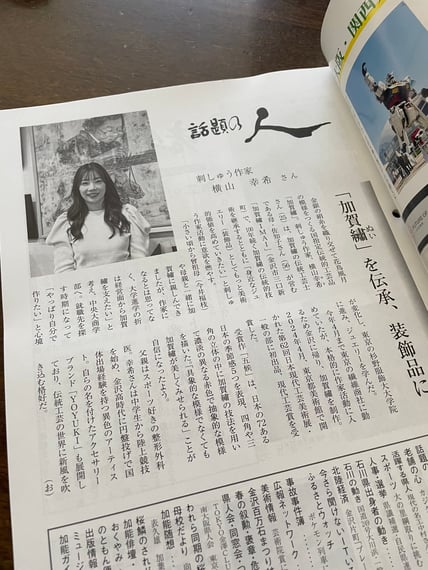 加賀繡 刺しゅう作家である横山幸希が、加能人で紹介されました。